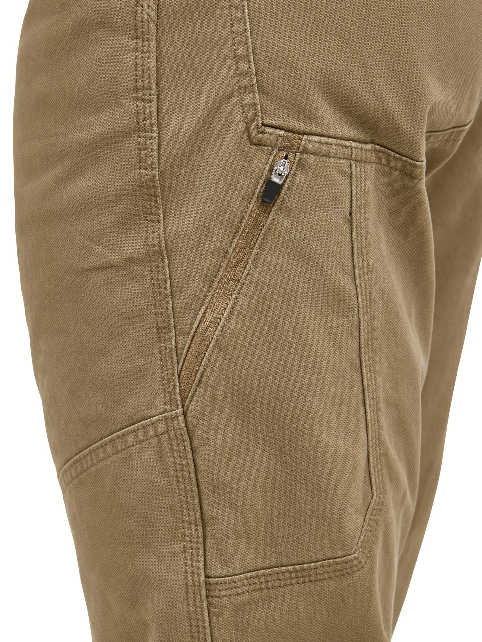 - Stretch canvas with gusseted crotch for mobility