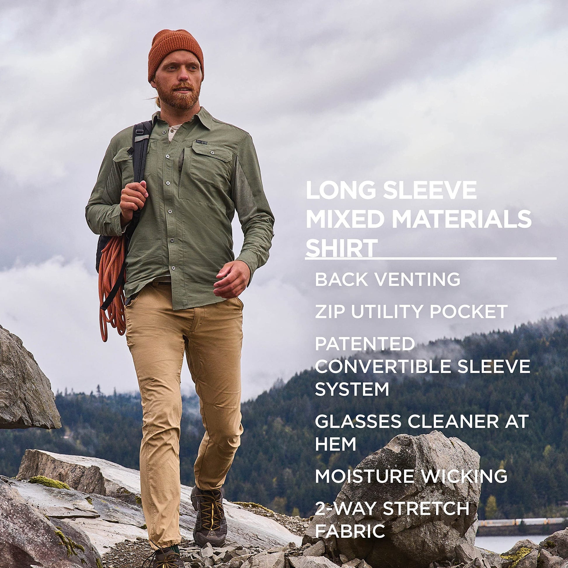 MULTI-PURPOSE. Get out to your next adventure in this long sleeve button down. Made with a glasses cleaner built into the hem, this shirt will keep you prepared regardless of the task.