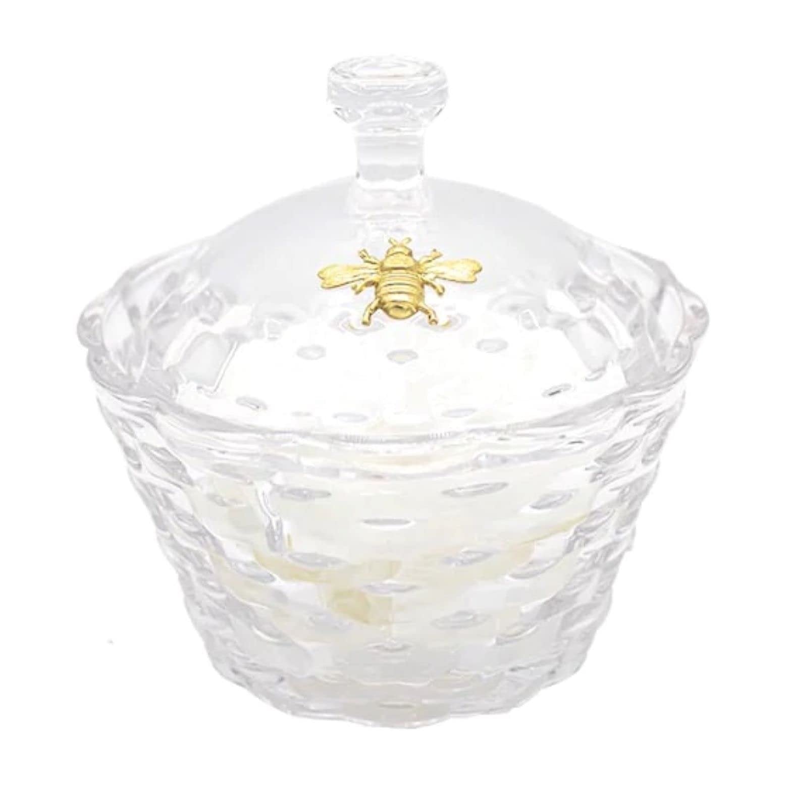 - Elegant glass jar (approx. 2.75 x 3.75 inches); puff included