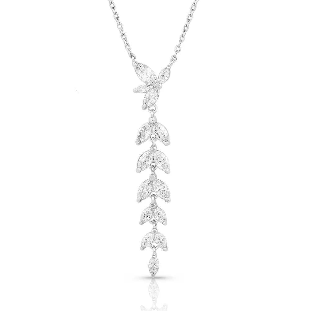 Inspired by crystal-clear waterfalls, this pendant layers almond-shaped clear cubic zirconia for a cascading effect. Attached to a 19-inch split chain for graceful drape.