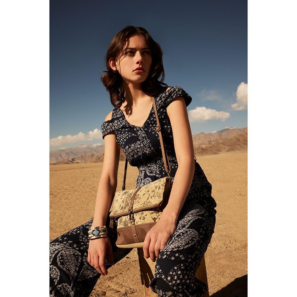 Myra Bag Crossbody Bag Women's Western Upcycled Canvas Leather Shoulder Handbag