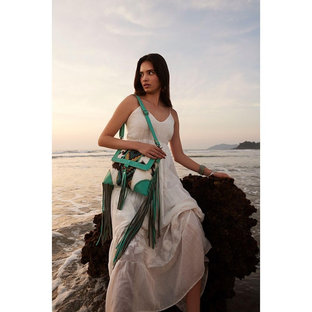 Myra Bag Shoulder Bag for Women Western Upcycled Hairon Canvas & Leather Tassel