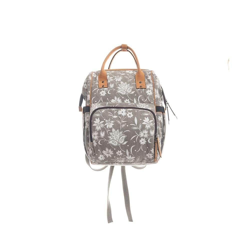 Myra Bag Womens Diaper Bag Western Upcycled Canvas Leather Backpack Handbag Gray