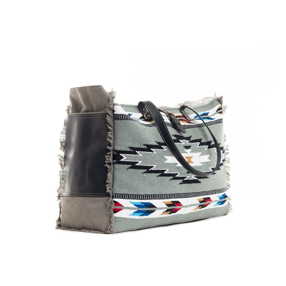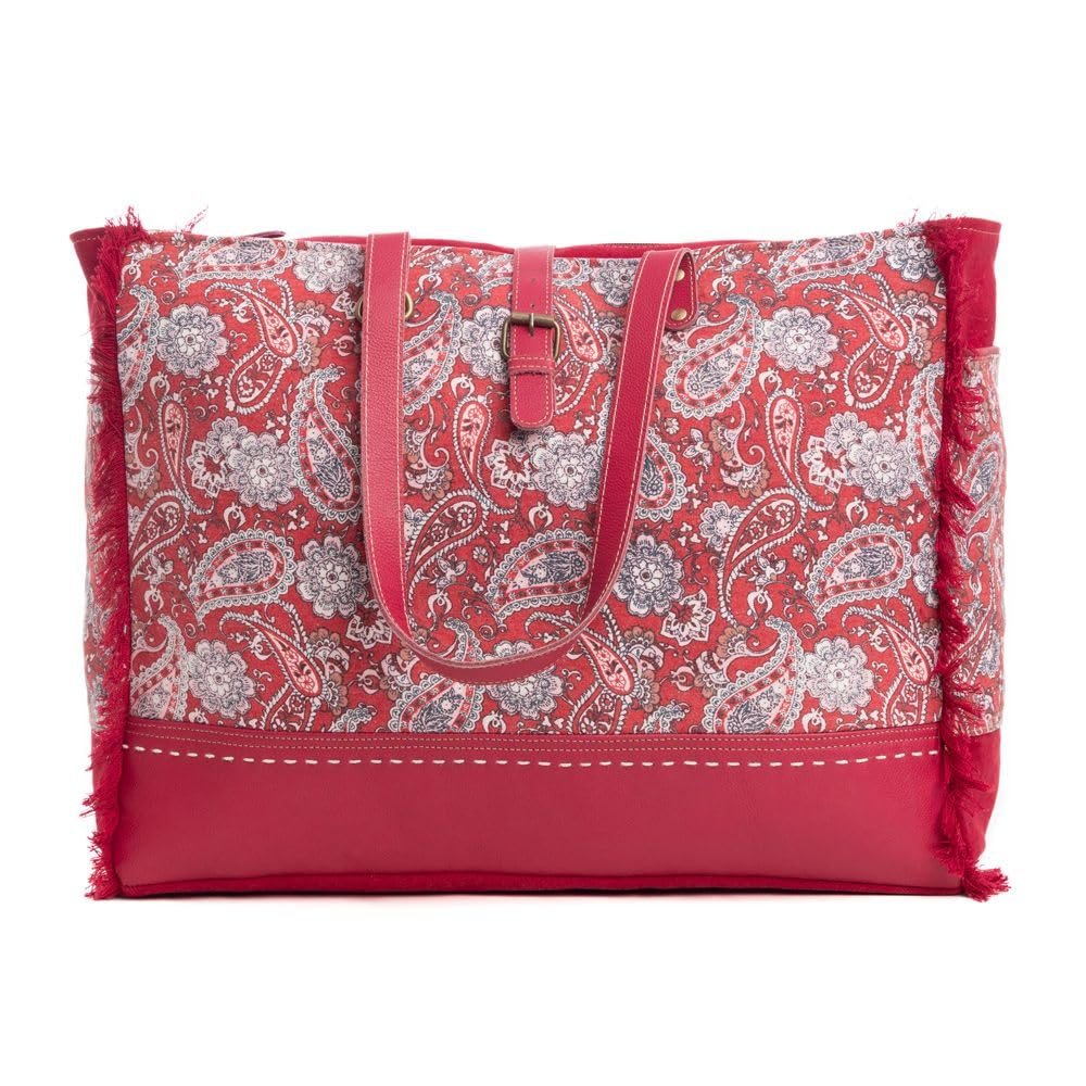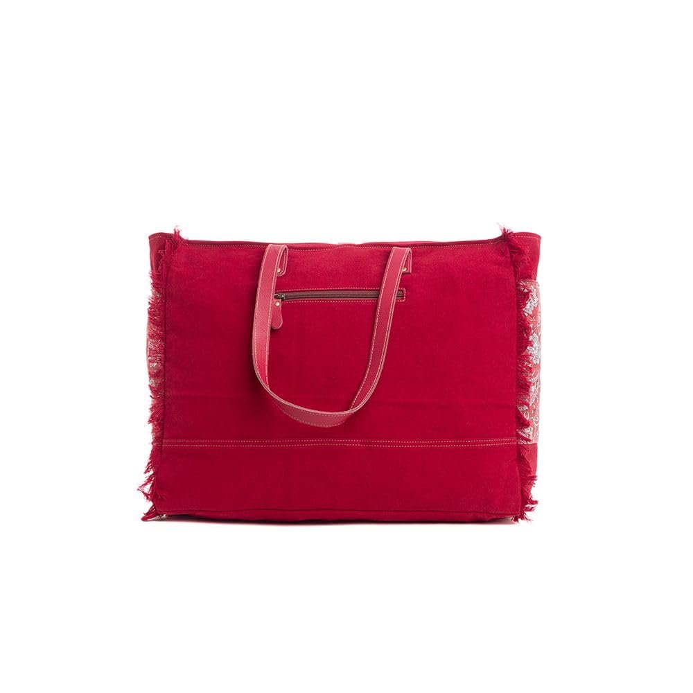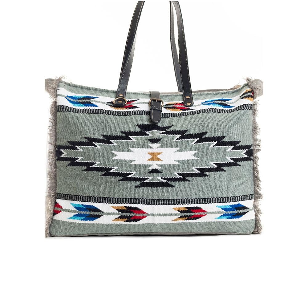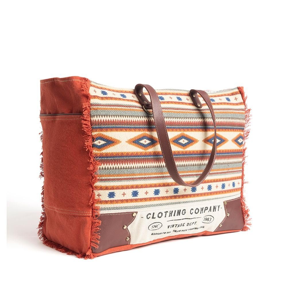 Myra Bag Women's Western Leather Weekender Bag Canvas Upcycled Shoulder Handbag