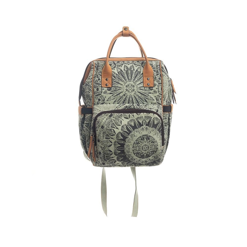 Myra Diaper Bag Women's Western Upcycled Canvas Leather Backpack Handbag Green