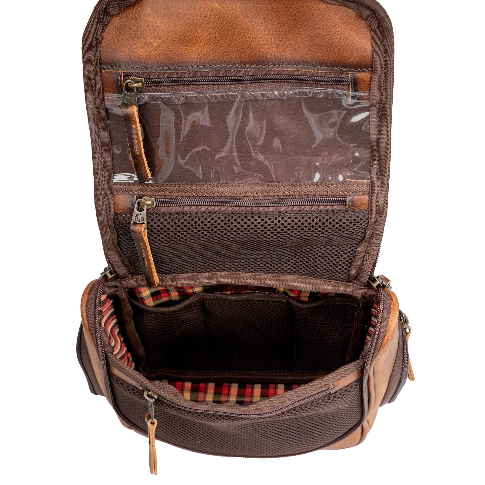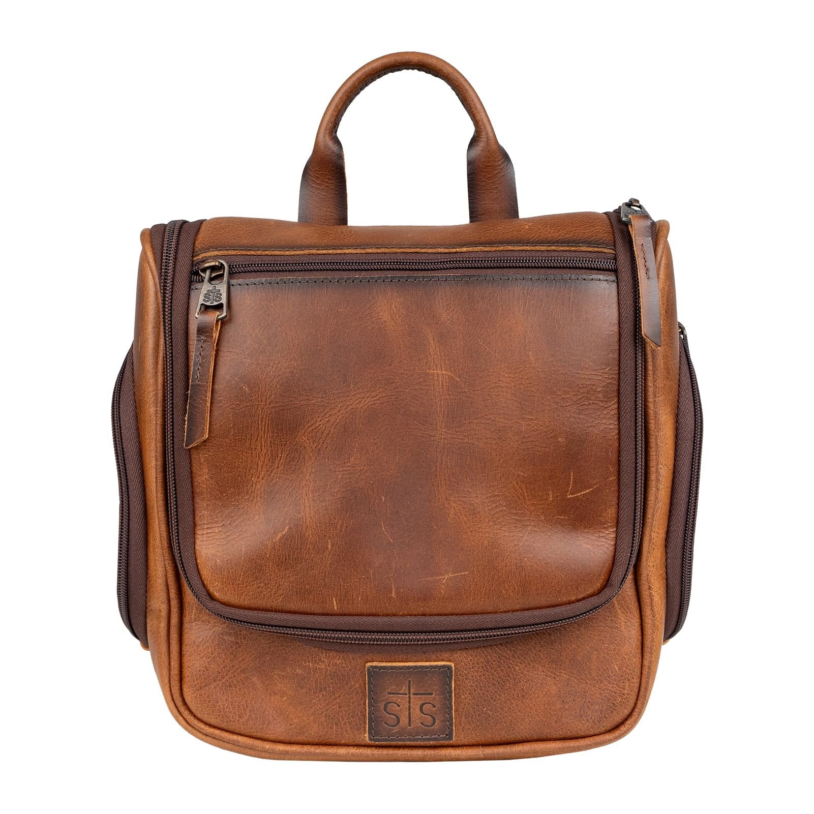 STS Ranchwear Men's Tucson Hanging Shave STS30310 Multi-Pocket Leather Travel Toiletry Dopp Kit Organizer Bag, Rich Tan, 10.5" W x 10" H