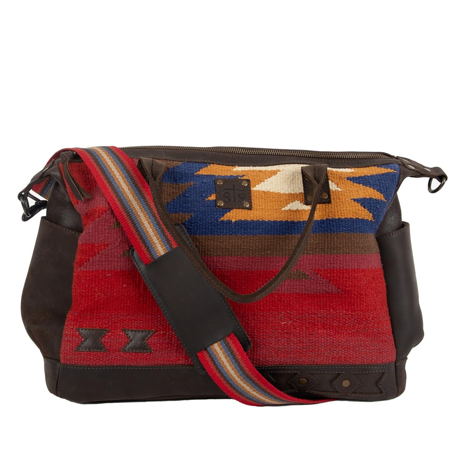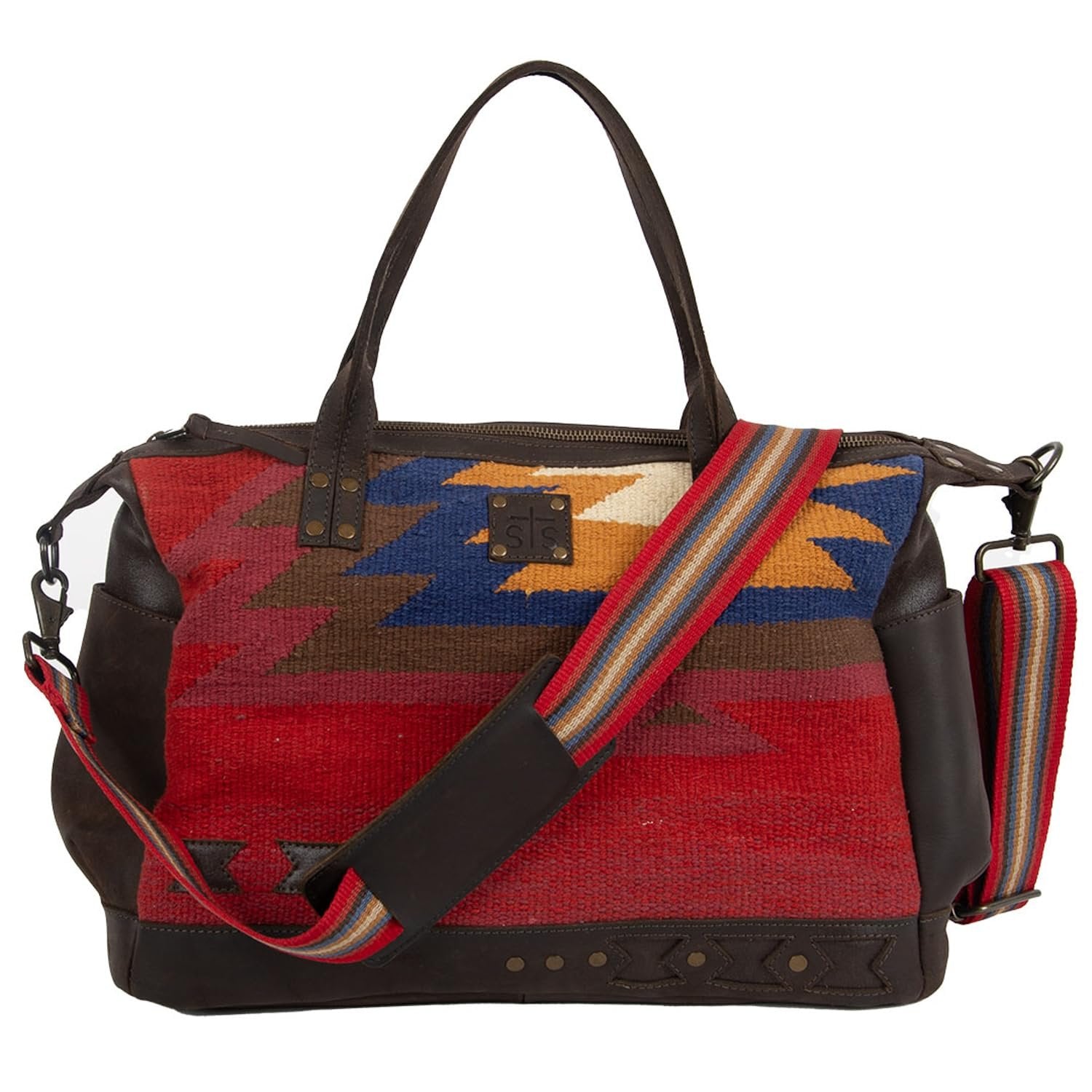 Keep your essentials organized with the STS Ranchwear Crimson Sun Diaper Bag featuring a Southwestern print.