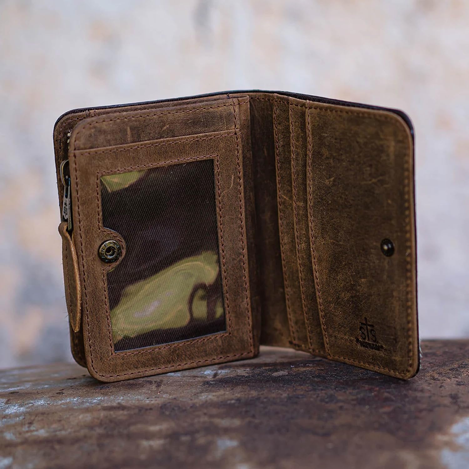 STS Ranchwear Womens Soni Distressed Brown Cowhide Zip Around Wallet