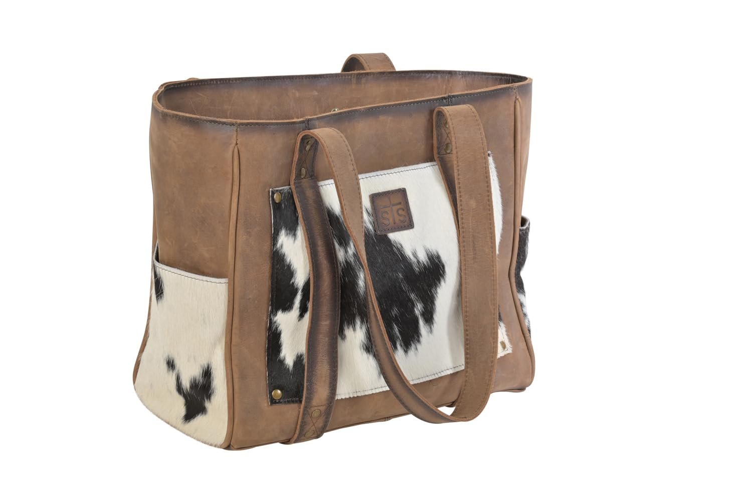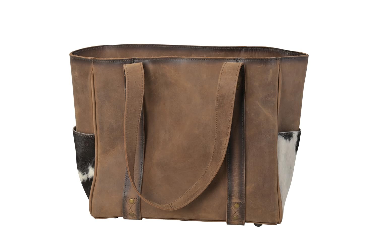 STS Ranchwear Womens Trinity Distressed Brown Cowhide Shoulder Tote Bag
