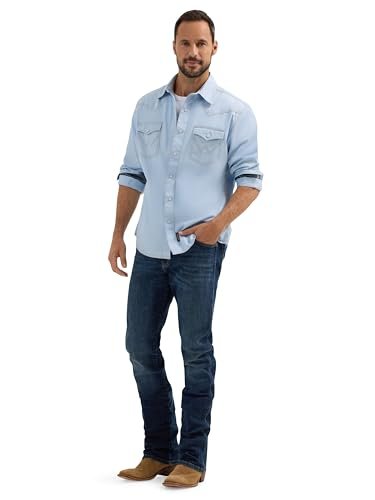 Wrangler Ice Blue Retro Premium Men's Longsleeve Collared Western Snap Shirt 112365625